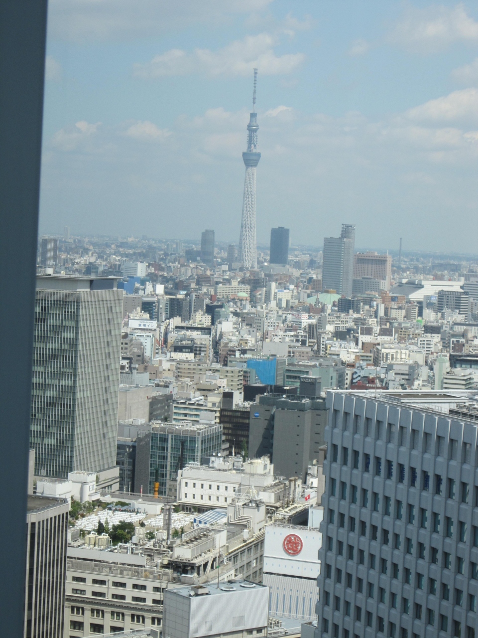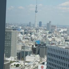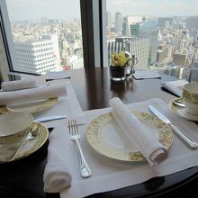 特典の予約のプリントを見せ中へ。席は窓側の2人席。都心の高層ビルやスカイツリー、千葉の幕張の高層ビルまで見え、楽しめました。