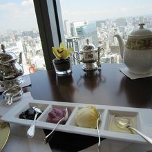 スコーンにつけるソースの中に私には初体験のクロテットクリームあり、またティーの種類もかなり豊富でコーヒーも何種類かありました。お勧めのシャングリ・ラ ホテル東京オリジナルヒマラヤンブレンドとレモングラスのティーを頂きました。味と香りともに一流を感じさせてくれます。
