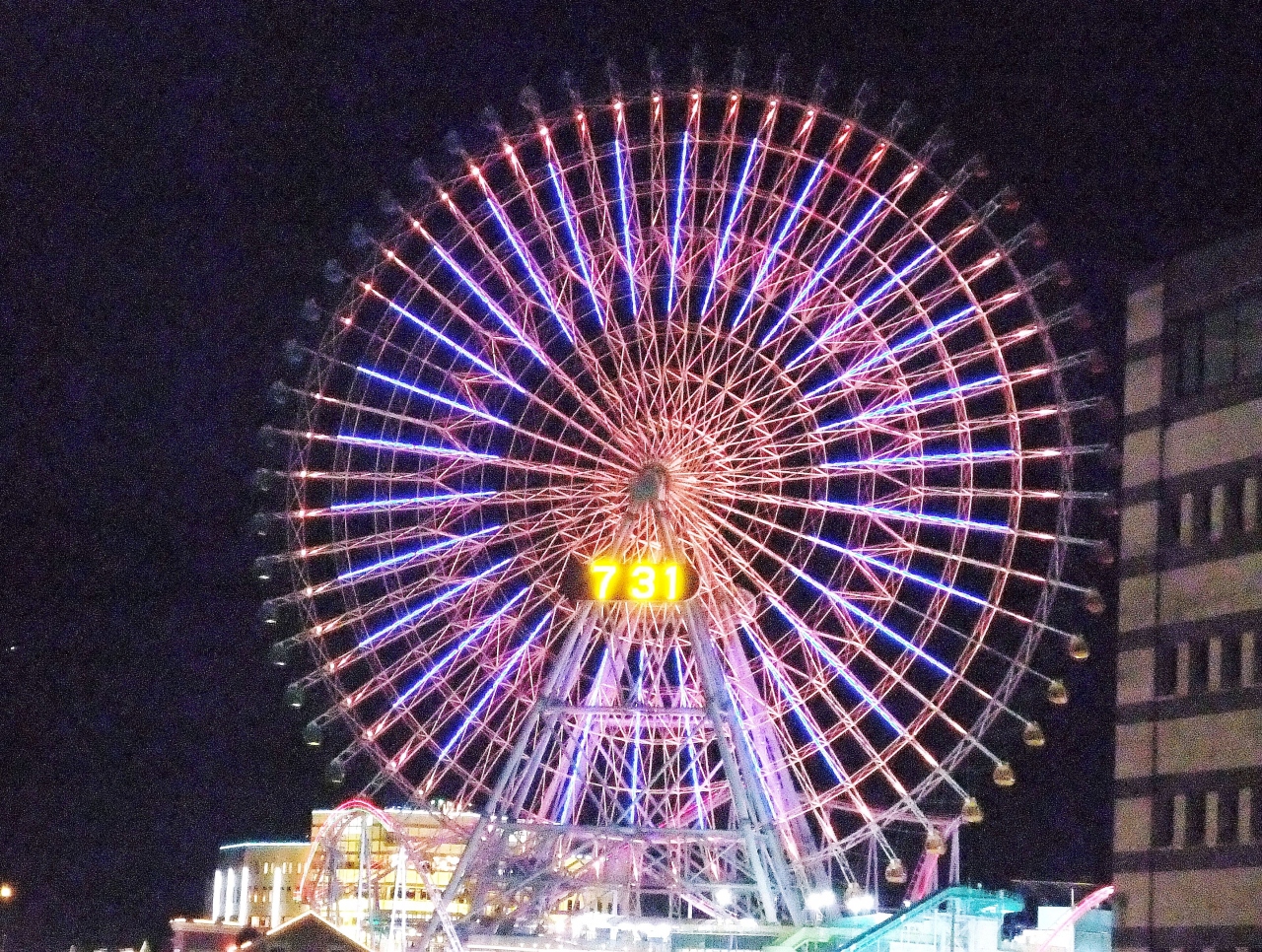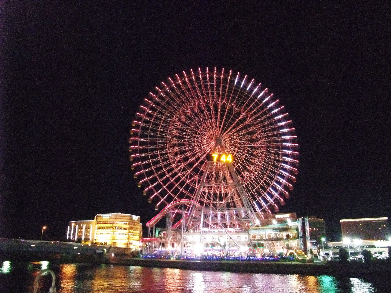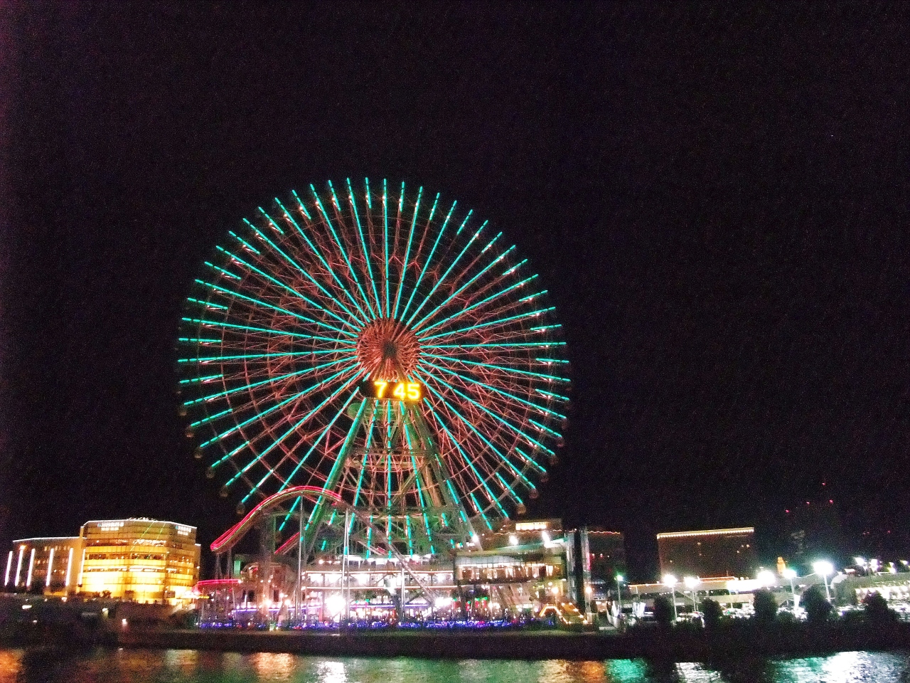 コスモワールドの大観覧車に乗りに行きました。コスモワールドの大観覧車コスモクロック21は大時計と観覧車が一体化しています。若いカップルがほとんどの中にぽっんと一人並んで待って、やっと乗れました。料金は3歳以上は700円です。大観覧車コスモクロック21は最高地点112・5mまで登ります。ここからの夜景は最高です!