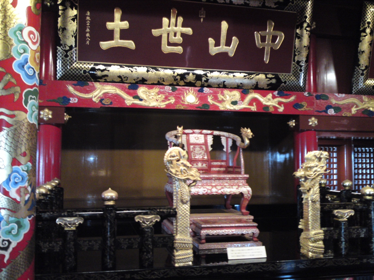 真っ赤な壁、真っ赤な柱、金の椅子・・・