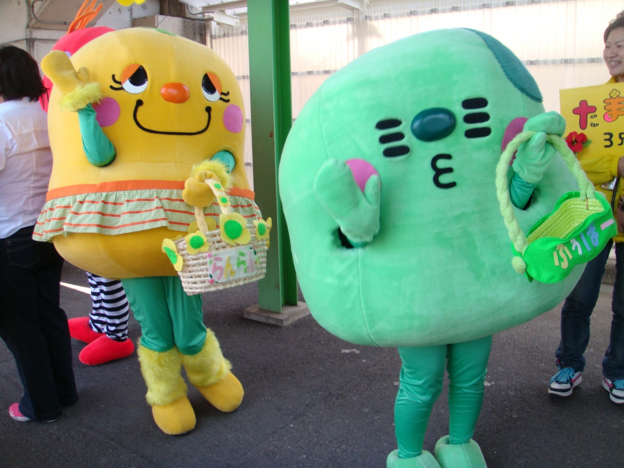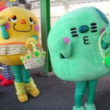 ホームでは指宿のゆるきゃら達が出迎えてくれました。