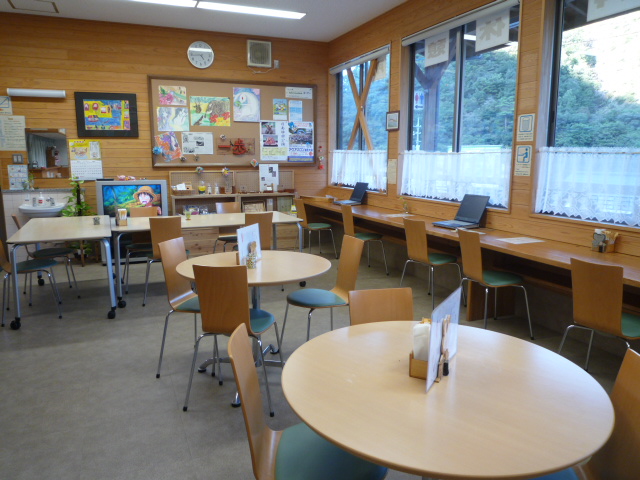 駅舎につながって無料休憩室(交流サロン)があり(オープン9~17時)、インターネットに接続したパソコンが無料で使えました。