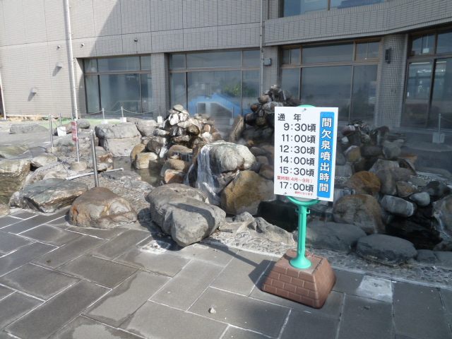 2階で展示物を見てました。オルゴールを全曲聞いたり、隣の足湯に浸かったり、休んでいたら、それなりの時間になり、もうすぐ吹き上げてくる感じで、わくわくしました。