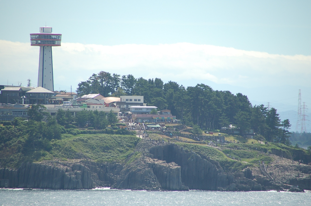 東尋坊から見える赤い橋につながった雄島に行ってみると島へつながる橋から東尋坊全景を見ることができます。島のちょっと長い階段を登って左側に行くとさらに東尋坊がよくみえます。雄島にも奇岩がありますので是非とも立ち寄ってみてください。