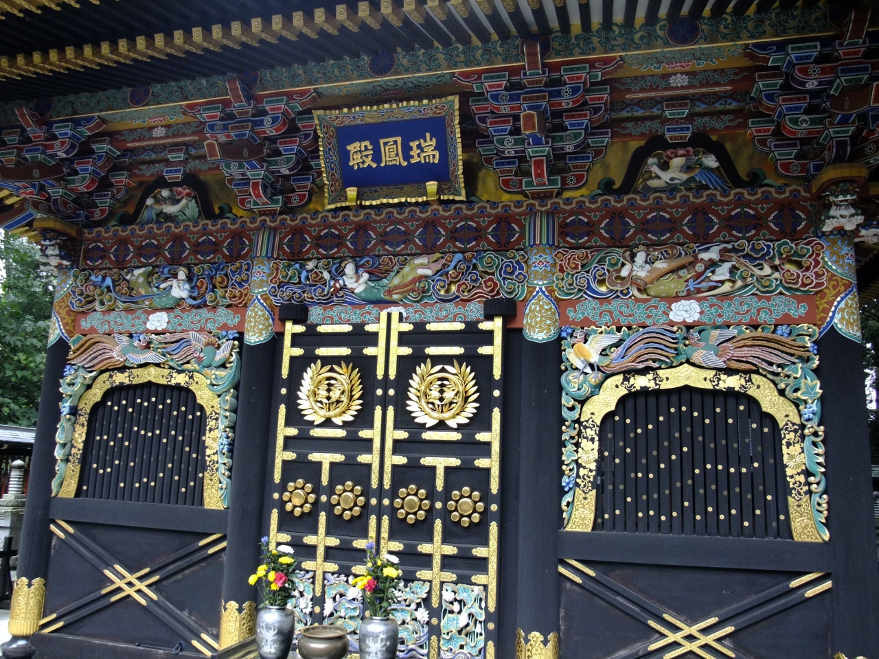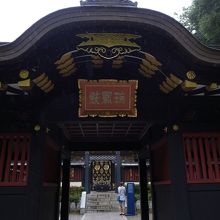 日光東照宮と同じ権現造りでカラフルな色合いと派手な装飾が印象的です。