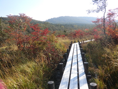 湿原の入り口に、「クマがいます」の立て札があるので注意。