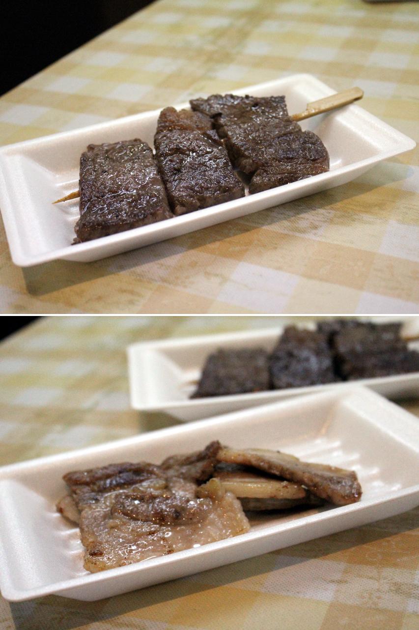 厚みもそれなりの分厚さ、大きく切った牛を3枚シオコショーで味付けして串にさしてあるのをいただく。