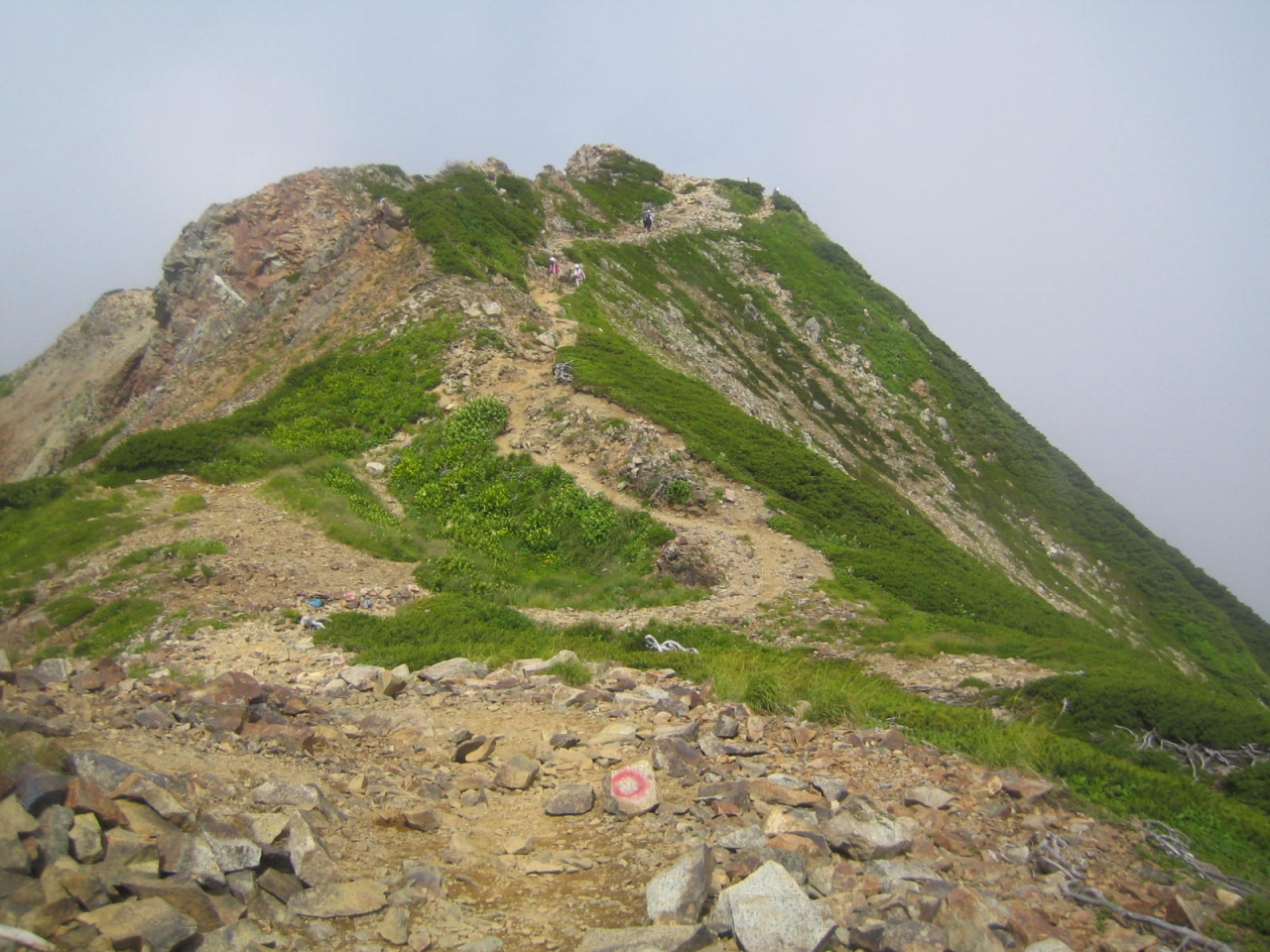 2度目も同じルートで、猿倉、雪渓、白馬岳、栂池だったが、最初の時は、山荘で台風にあい、翌日雨風の中を下りたので頂上からの風景、途中の風景、お花畑の花を見ることができなかった。