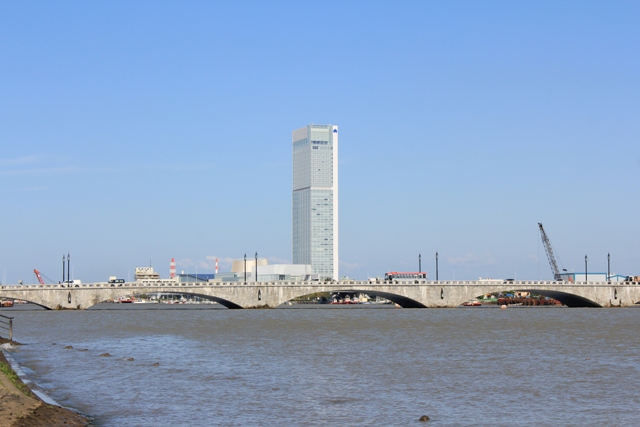信濃川沿いのやすらぎ堤(てい)を歩くと、この橋を横から見ることができます。