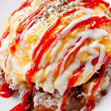 タコライスの上にフワフワの卵が乗っててオムライス風のタコライスです!