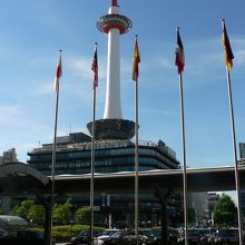 青い空にくっきり。京都駅に映るタワー・・・・なかなか美しい・・・・