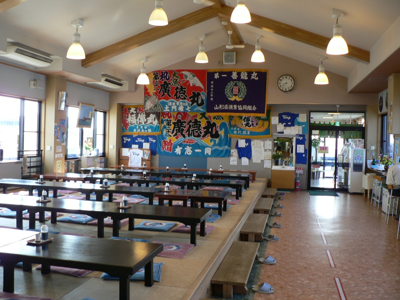 2階の「とびしま」は鮮魚を使うレストランで、酒田港を眺めながら手ごろな価格で新鮮な魚料理の食事ができる。