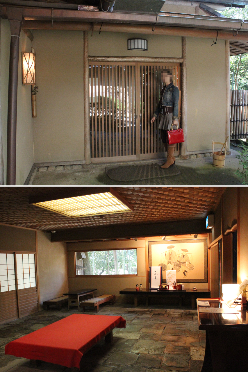 桜シーズンや紅葉シーズンには、かなりの人出となる道だけれど、その道沿いにひっそりと隠れ家的な雰囲気である「叶匠寿庵」
