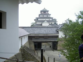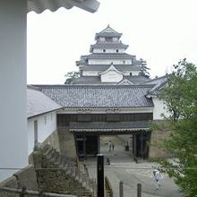 場外の茶屋から見る会津若松城は、なかなか風格と風情があっていいもんです。
