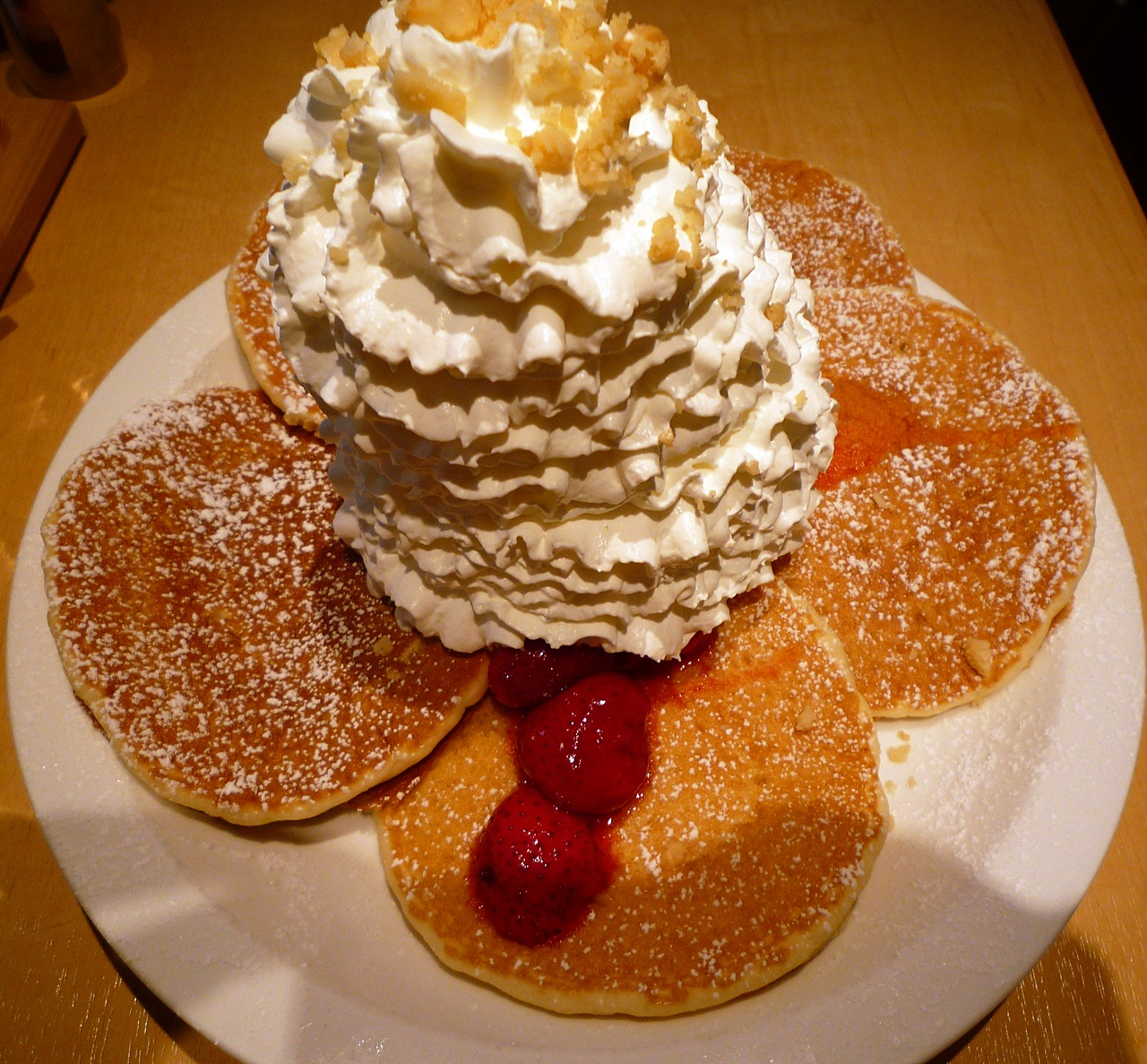 パンケーキのホイップクリームはふわふわですごいボリュームでした。