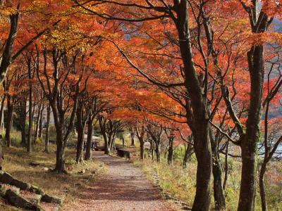 隠れた紅葉スポットの場所は、桃源台駅から芦ノ湖キャンプ場に向かう湖畔の遊歩道です。