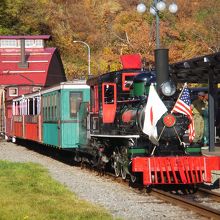 動態保存されているアメリカ製の蒸気機関車にも乗れて、鉄道好きには大満足スポットです。