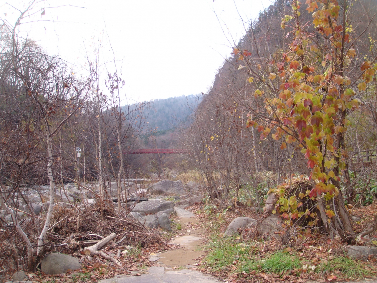 定山渓の温泉街の側には散策路があって、渓谷美を楽しむことができます。