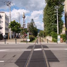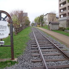 小樽駅から運河の方に歩いて行くと、右手に手宮線跡があります。