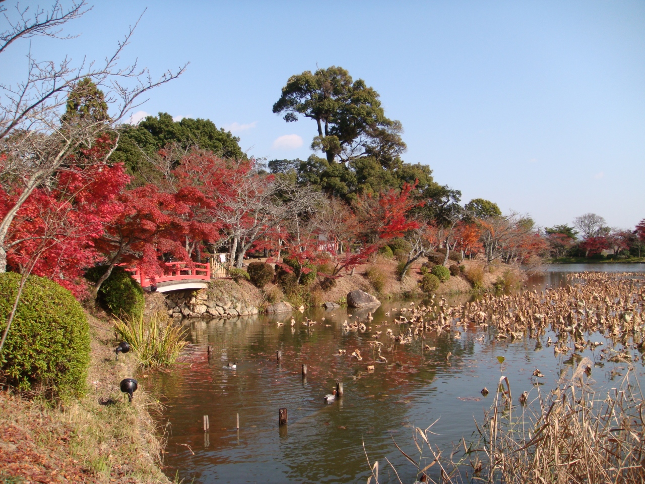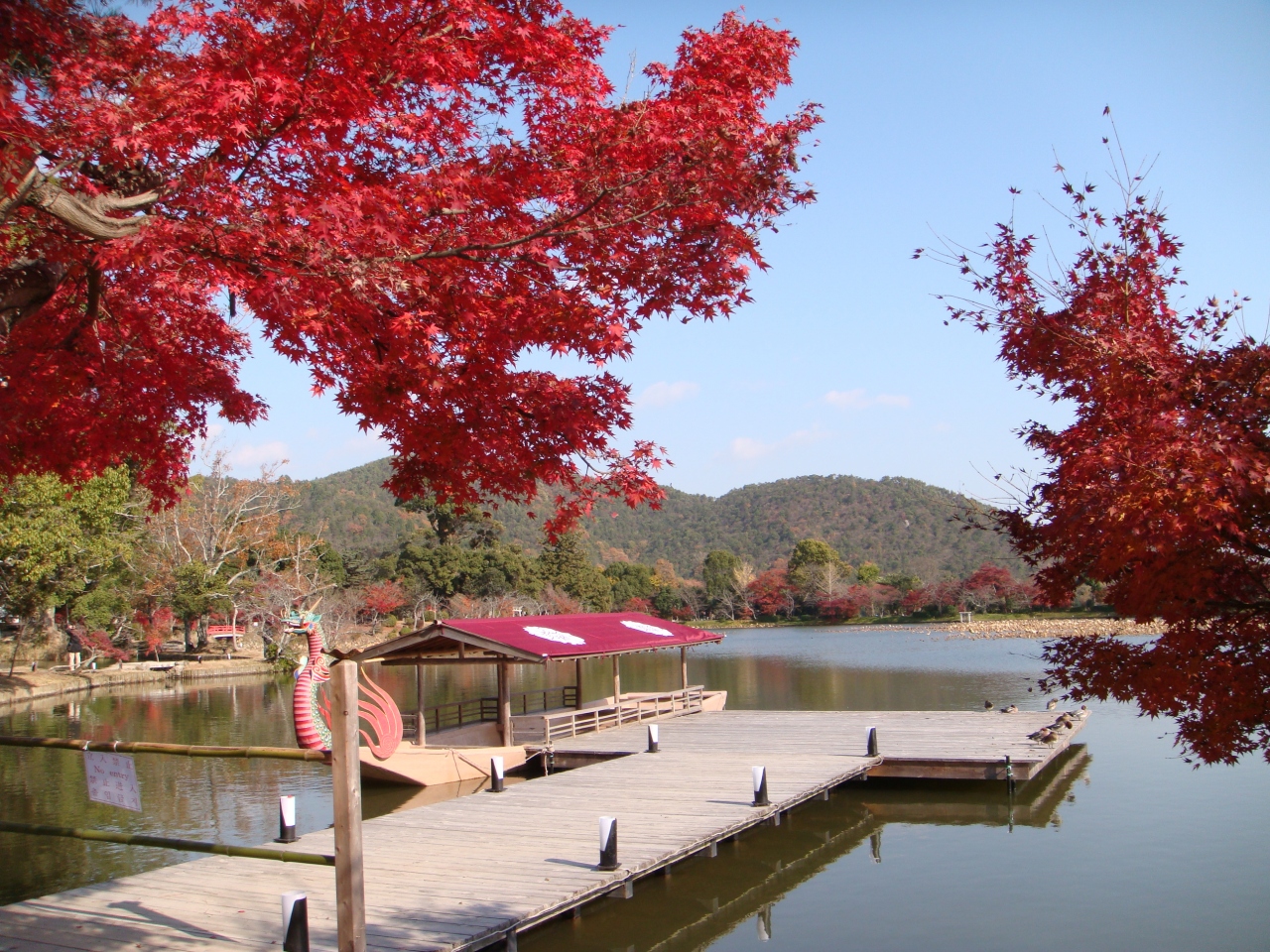 紅葉時期は池の周りの木々が赤く色付き、美しい景観です。
