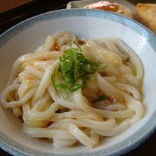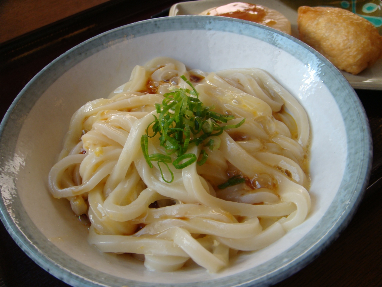 茹でたてうどんに卵が絡まっていい感じ、しょうゆを少したらして頂きます。