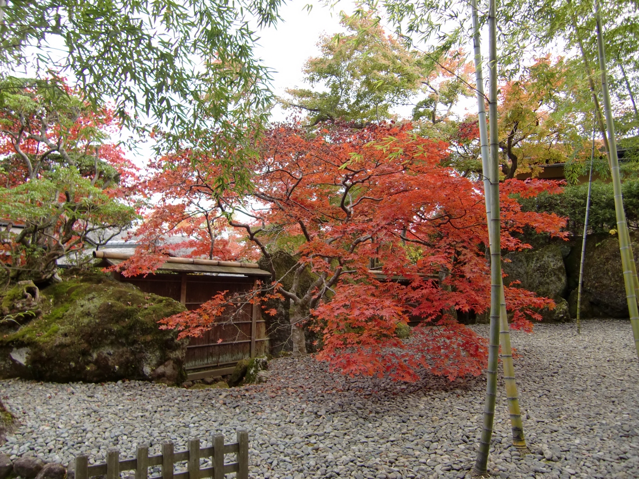 竹を配した竹庭、苔庭、萩の道、石楽園から成り、