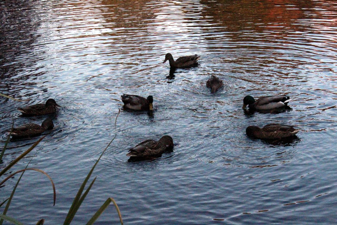 真っ赤に染まる紅葉に朝日があたり、池を赤く染め、そこに泳ぐ鴨たちが赤く染まる様子を見ることができる。。。