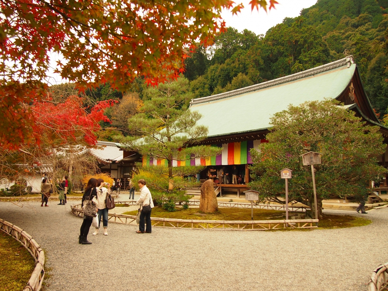 嵯峨野めぐりの定番、二尊院の紅葉の見ごろがはじまりました。常寂光寺からは徒歩約4分程の距離ですが11月23日現在ではこちらの方が紅葉が進んでいます。