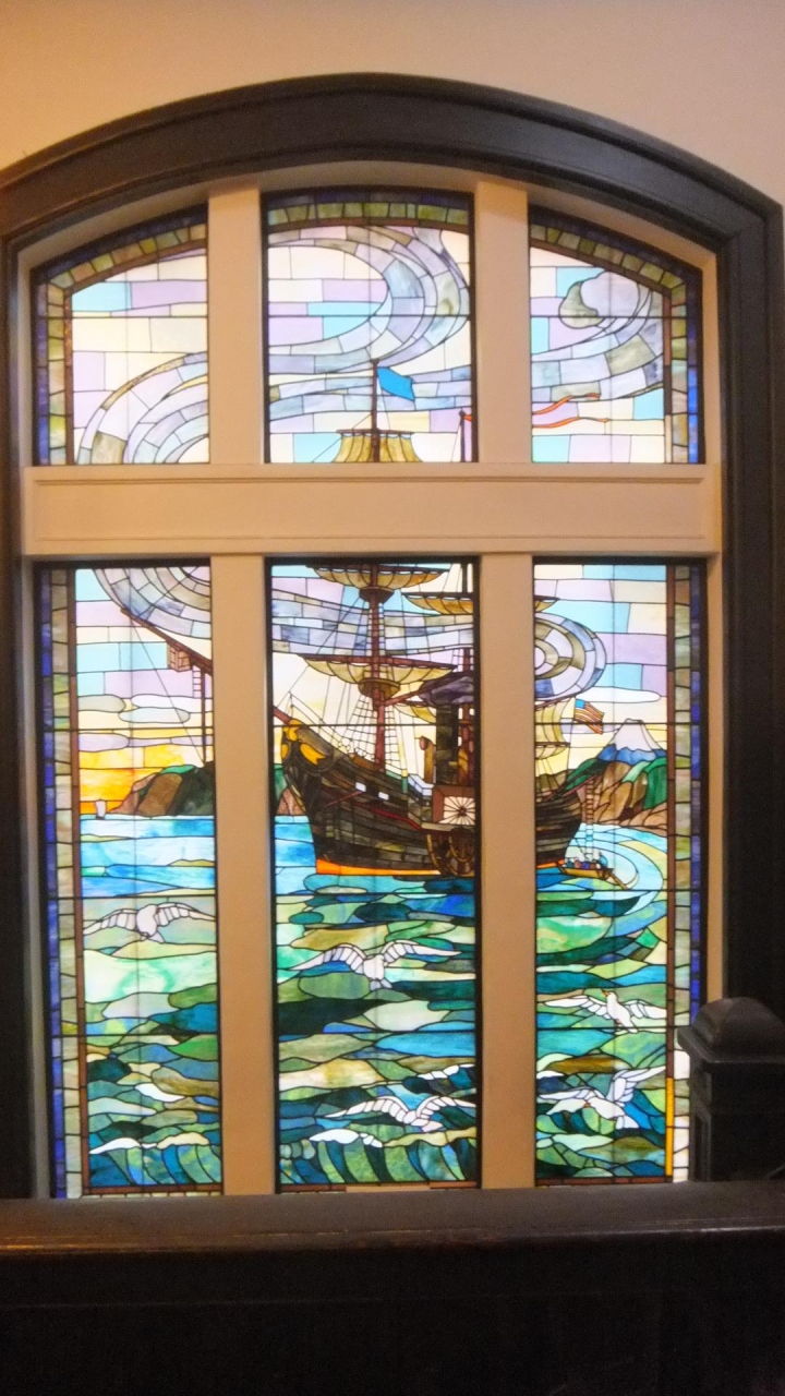 2階のステンドグラスやらせん階段は自由に見学できます。