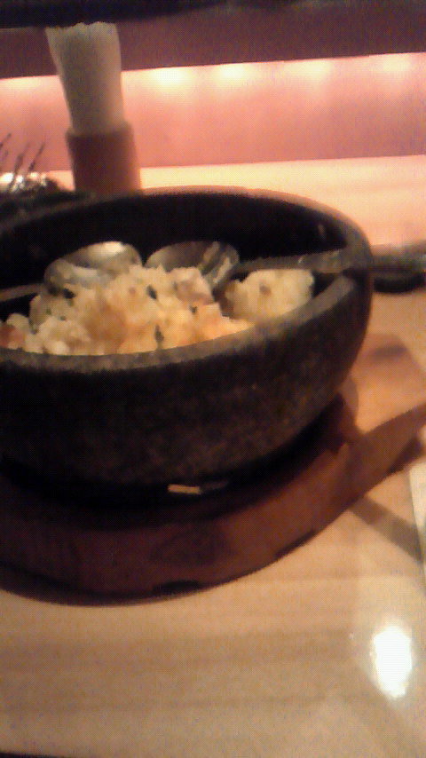 海鮮石焼ご飯は,石焼きビビンバのような器にマグロ,ほたてなどがのっていて