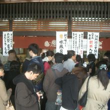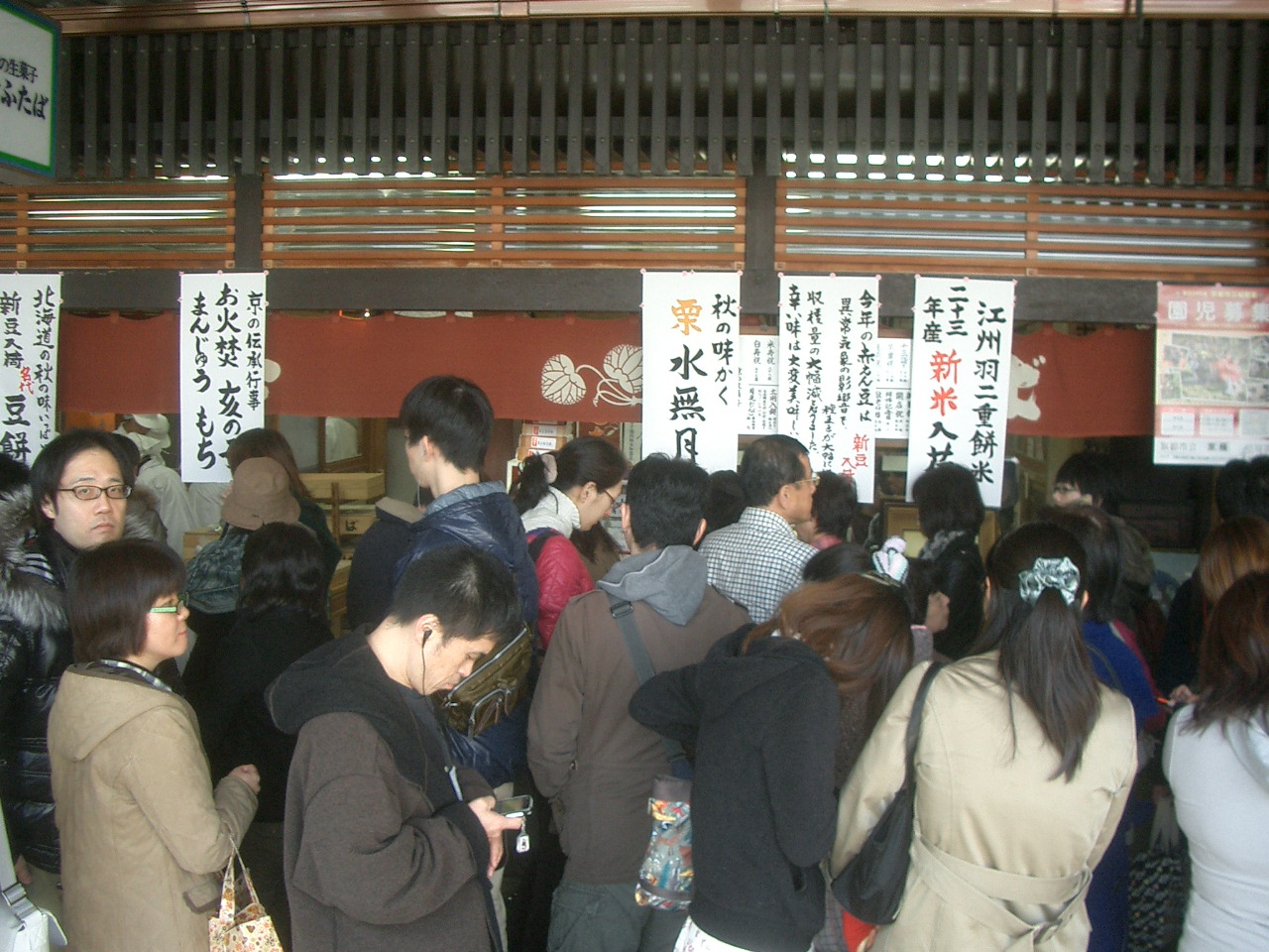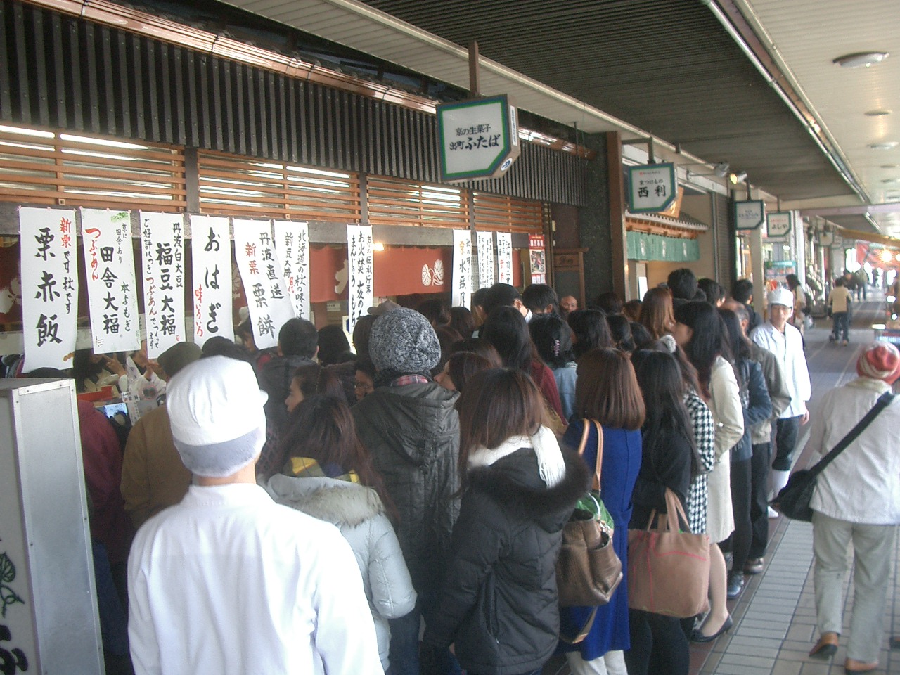 観光シーズンの出町ふたばはすごい行列です。30分以上は並ばないと買えません。人気が高い証拠です。だっておいしいんだもの。看板商品の大福は、モチモチとしたお餅で歯ごたえのある豆。一度食べたらやめられません。午後になると売り切れになる心配がありますので、早い時間に余裕をもって買いに行かれることをオススメします。
