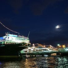 園内の噴水はライトアップされているし、係留されている船の明かりが水の面に映って本当に綺麗です。