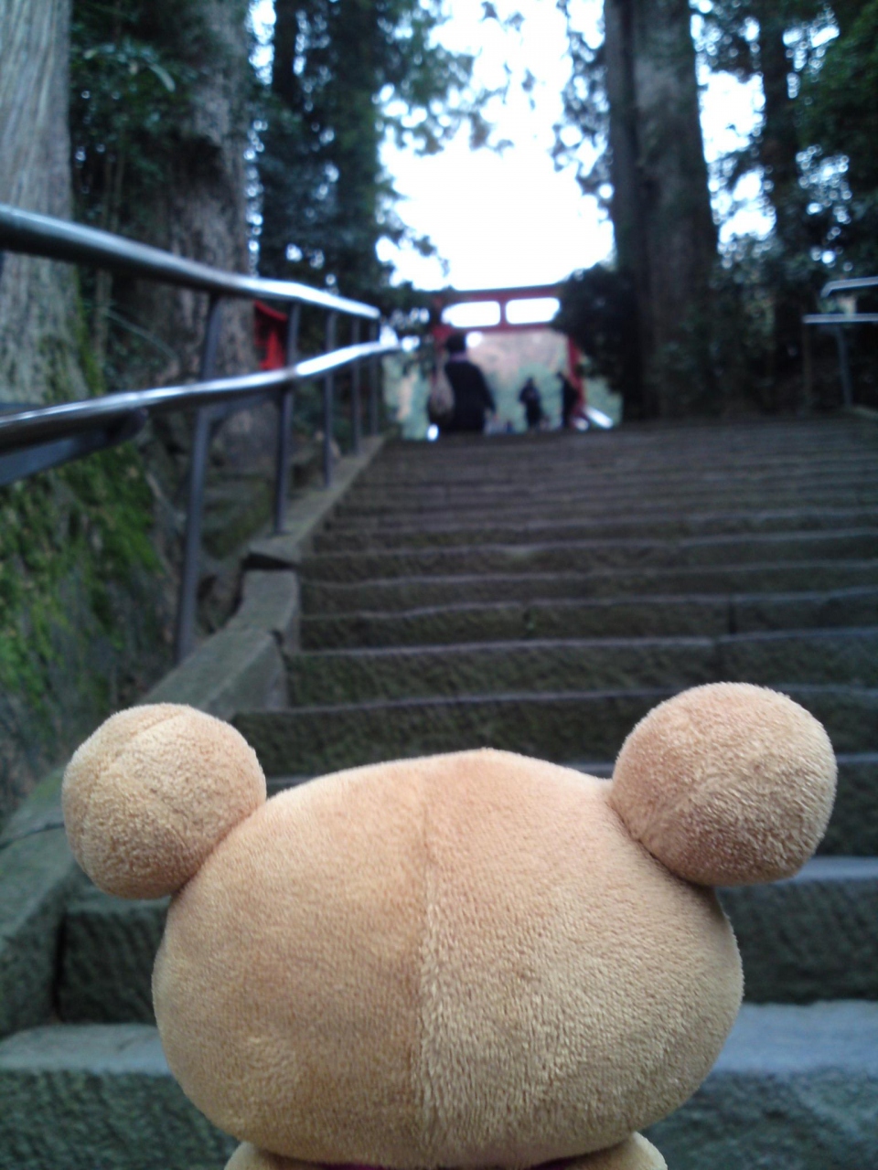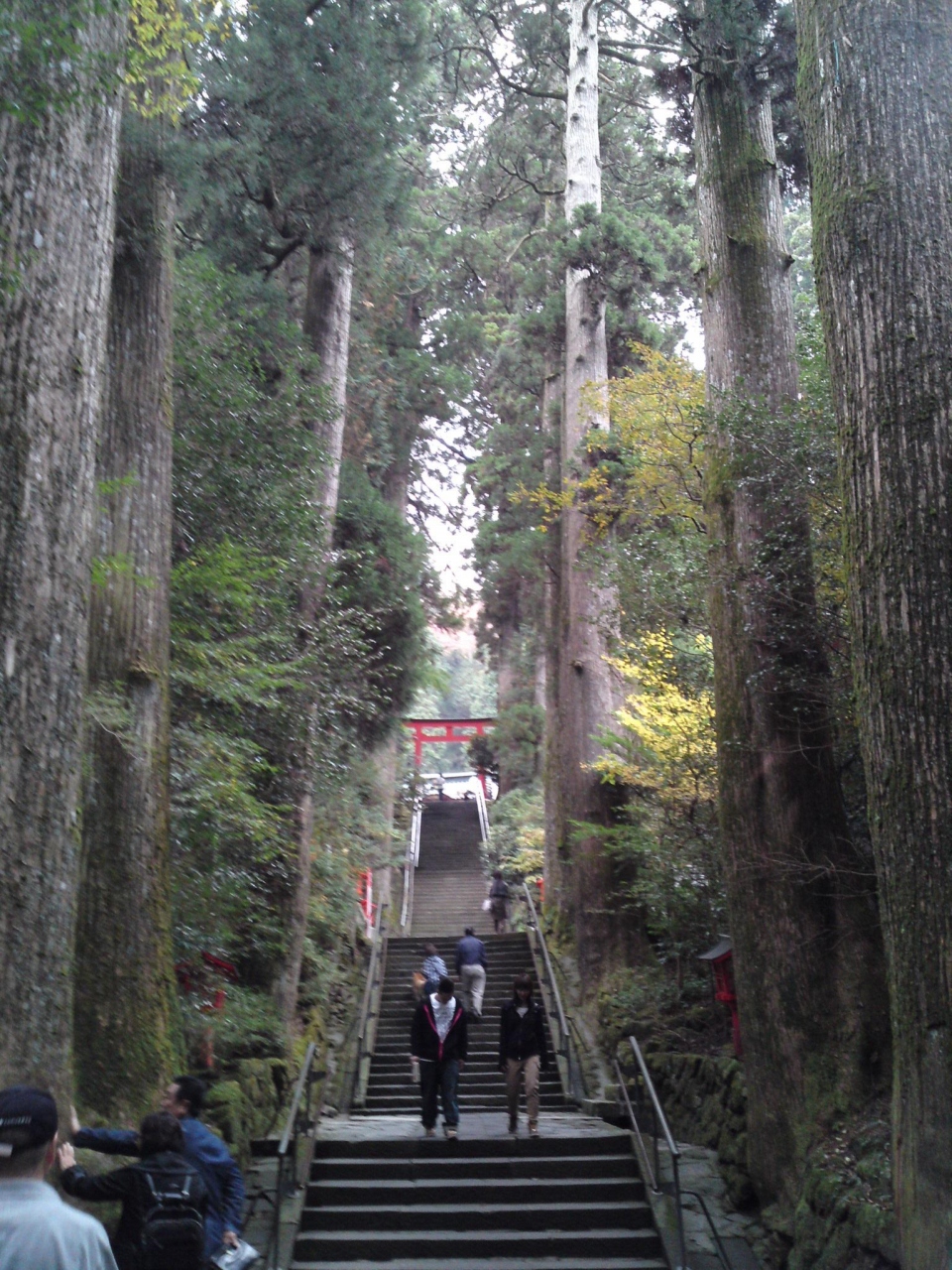 元箱根バス停より湖脇を歩き10分ほどでした。参道は大木の杉が天に向かって立ちそびえています。本参道は何段あるのかわからない位の急な階段ですが、意外と息切れすることなく本殿まで上がれました。