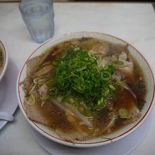 しょうゆ味でねぎと薄切りチャーシューがたっぷりはいっていて、とてもおいしかったです。