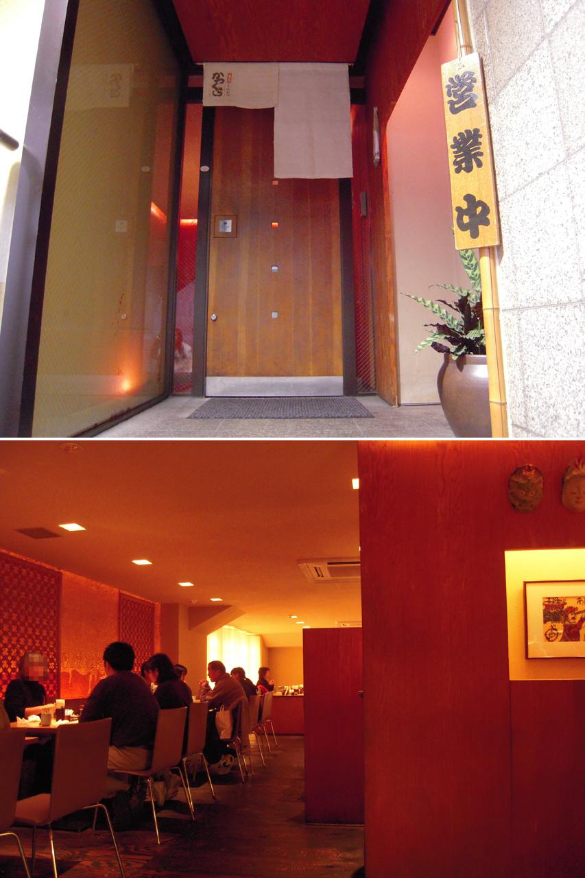 - 照明を落とし、和紙や竹を使った内装は京都を意識しているが、テーブルや間隔が狭いのが難点。