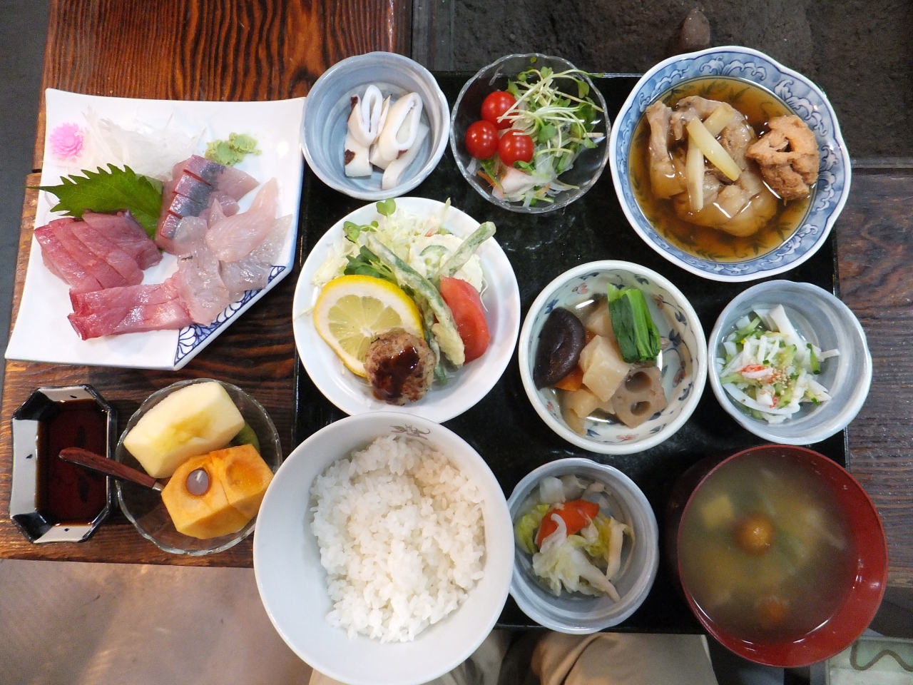 お刺身の盛り合わせもあります、予算を伝えてください。