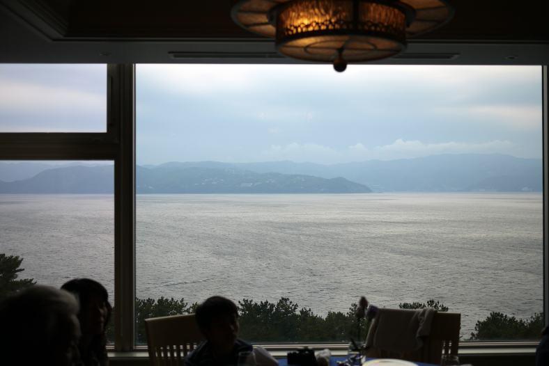 お店唯一の個室の広く取られた窓からは、相模灘越しに伊豆半島が見渡せます。