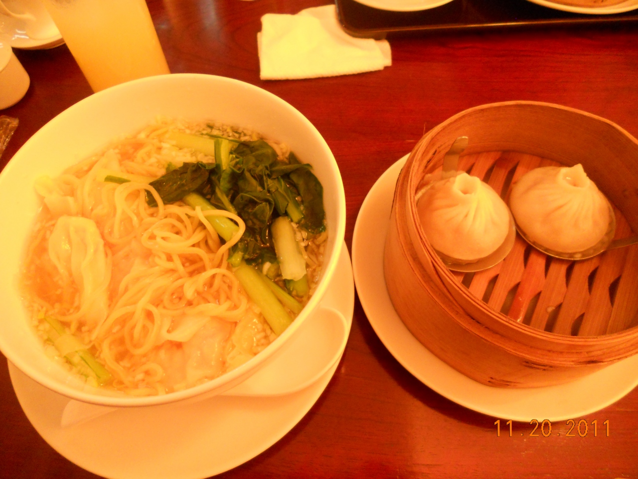 この上野バンブーガーデン店限定のメニューで、パンダ饅頭付きのランチセットがありました。 かなりボリュームだったと注文していた友達は言っていましたよ。 ちなみに、このパンダ饅頭は、お店の外のテイクアウトのコーナーでも買うことが出来ます。 私はプリプリ海老のワンタン麺(塩味)を注文しましたが、ちょっと味が薄くて残念。