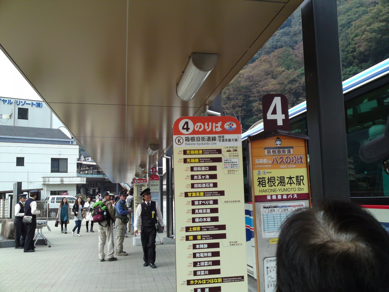 元箱根への移動は湯本駅より1000円前後かかります。箱根湯本駅改札より、通路を通り、国道1号を渡った先にバス停があります。手前から1番乗り場です。(1番奥が4番乗り場)