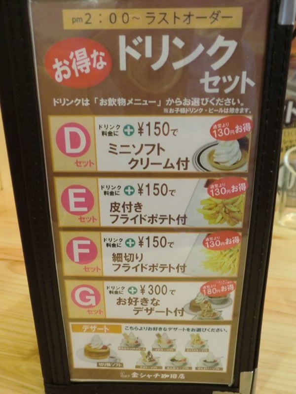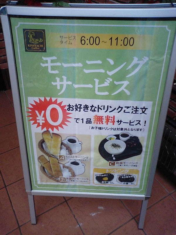 - 名古屋では常識ですが3種類のモーニングサービスもあります。