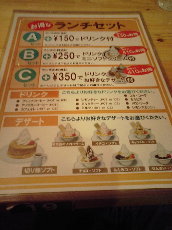 カフェにしては食べ物も充実していて定食はとんかつ、えびフライ、から揚げ、豚生姜焼き、富士宮やきそばなど…。丼は鳥、豚5種類ありミニ丼もあります。焼うどん、やきそば、サンドイッチなども数種類あります。お子様ランチもあります。