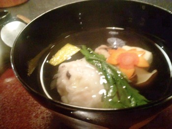 次は蟹真薯の椀物 冷暖の取り合わせが旨い