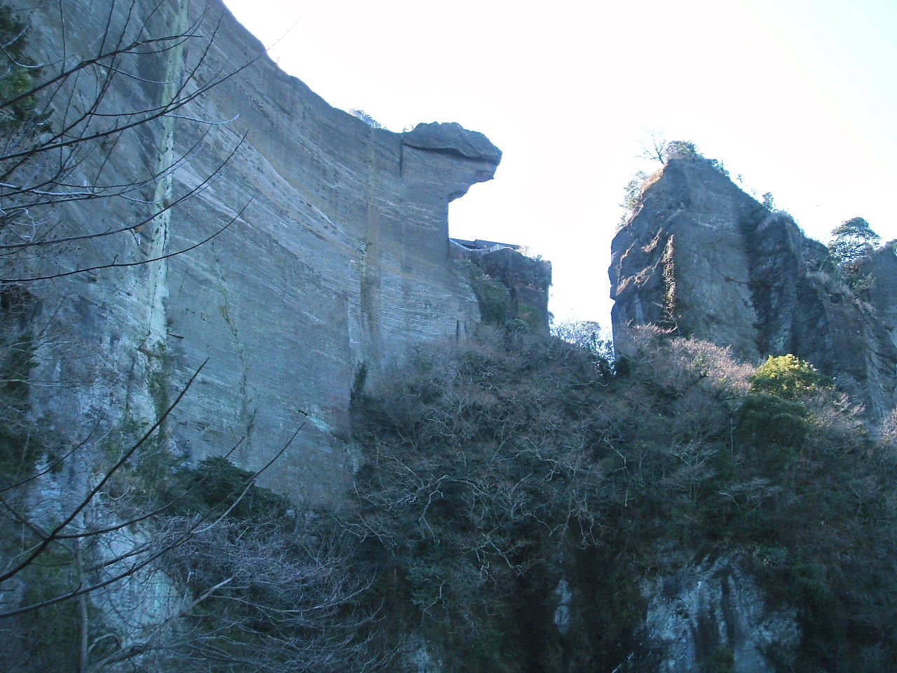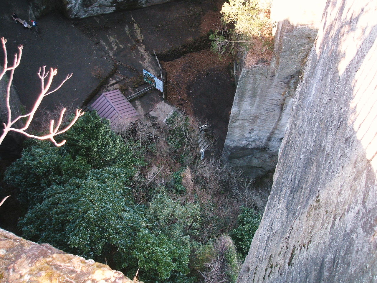 鋸山は良質な房総石の産地として知られ、江戸時代から明治にかけて盛んに切り出されたのだそうで、鋸の歯のような独特の山容も、石を切り出した跡だそうです。切り立った絶壁から谷底を覗くと、目が眩みそうで、地獄のぞきといわれるのも頷けます。