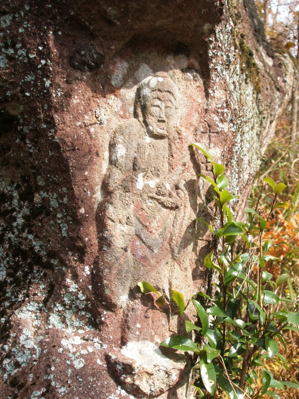 また、鶴ヶ原から池の尾にかけては、このあたりの村々の民間信仰の霊域で、ミニ八十八ヶ所が作られており、なんとも素朴な小さな可愛い磨崖仏が点在しています。素朴なミニ摩崖仏を探しながら鶴ヶ原を歩いてみてください。