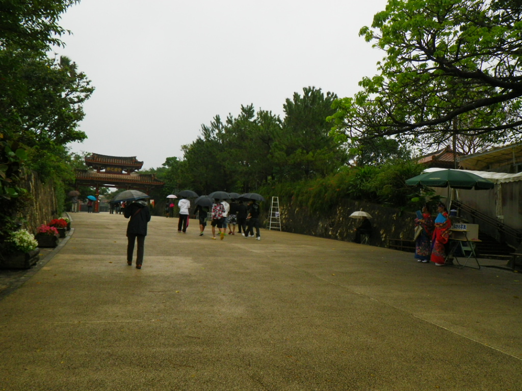 守礼門。モノレールの首里駅からは徒歩15分と結構距離があります。そのあと首里城見学は登り坂ですから、日頃運動不足の私は、タクシーの運転手さんに声をかけられ、迷うことなく乗りました。ワンメーター500円で着きます。体力温存です。路線バスもあります。