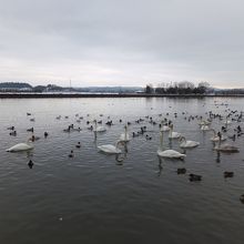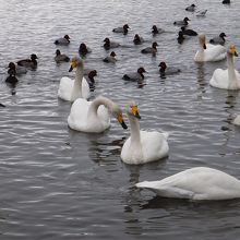 毎年、冬になると飛来する白鳥。毎日朝の5時から世話をする方々もおられます。