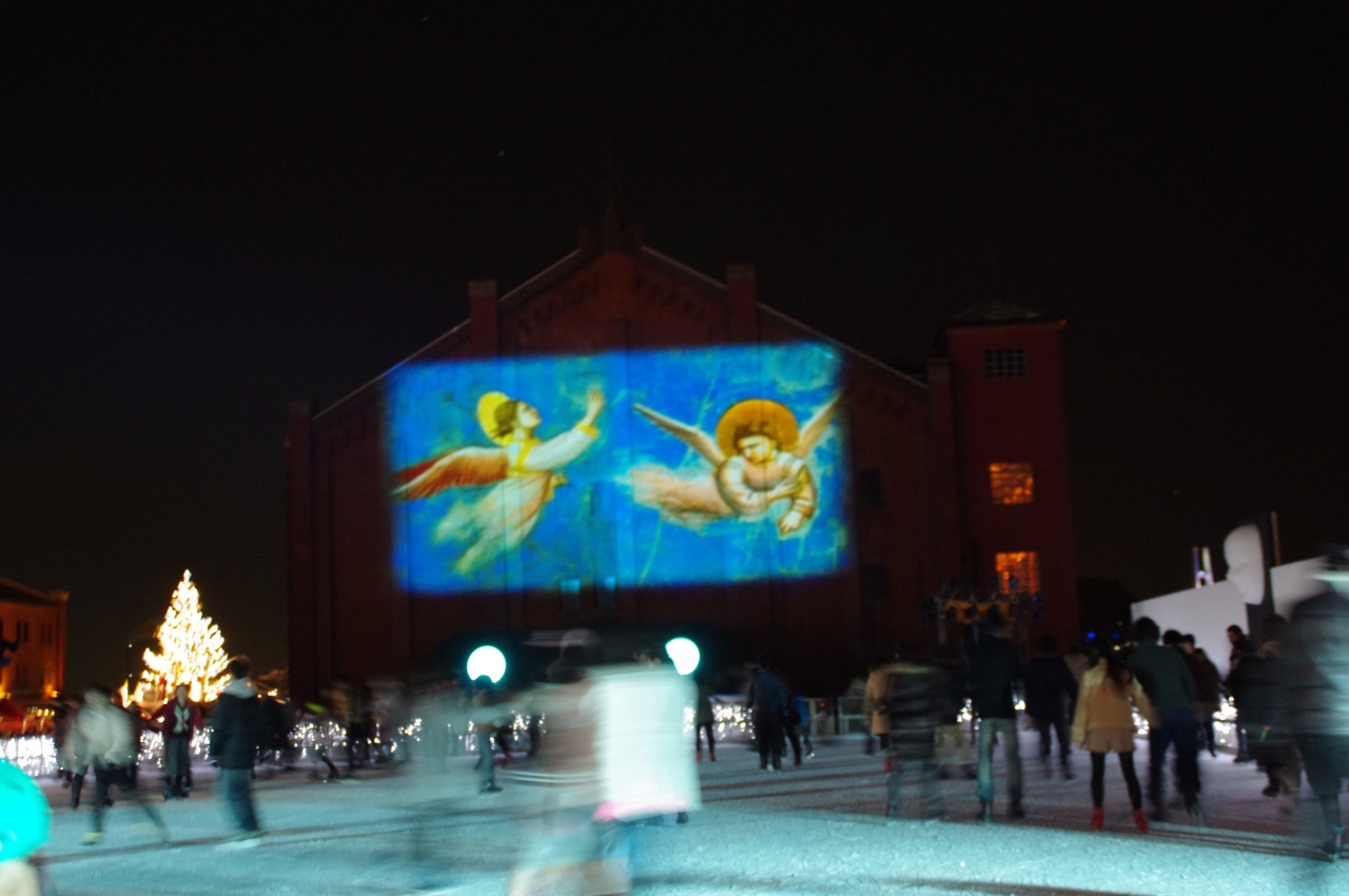 赤レンガの壁に絵が映し出されるので、アートリンクと言うのだと思います。