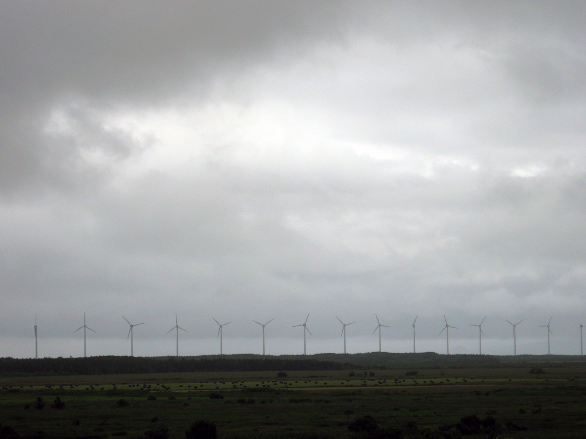 高さが100mもある巨大な風力発電用の風車が約3.1kmも一直線に28基も建ち並ぶ姿を間近に見ていると、とても日本とは思えない気がしてくる。