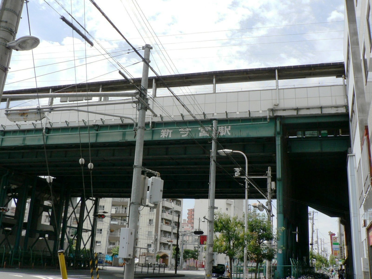 新今宮駅北側は歓楽街である新世界だ。新今宮駅のそばには大型遊具や娯楽施設と商業施設を合体させた「都市型立体遊園地」として1997年に開業し2007年に営業を停止したフェスティバルゲートや同時期に開業した大型入浴施設「スパワールド」などがある。
