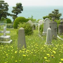 ガイドブックには必ず出てくる外国人墓地ですが、他の観光スポットが近くに無いのと、市電の電停から遠いせいか、いつ行ってもほとんど人がいません。墓地は宗派等によって分かれていてあまり広くはありませんが、古い墓石が異国情緒を醸し出していたり、またここから見える海や対岸の山々が大変美しく、お気に入りの場所です。花の季節がおすすめですよ!
